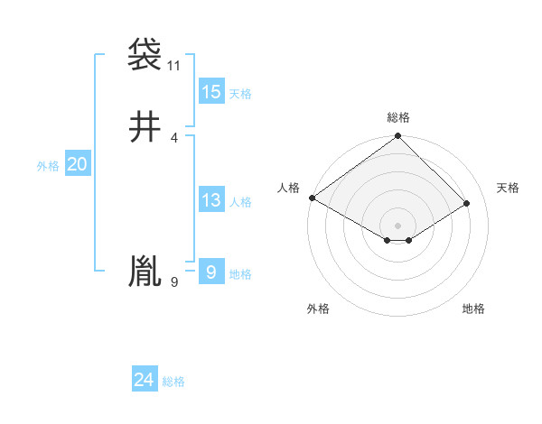 袋井 胤さんの外格は20画の1点!
