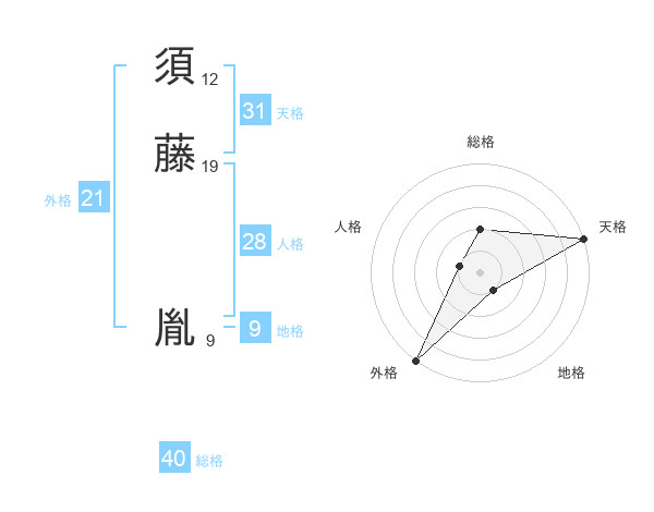 須藤 胤さんの天格は31画の5点!