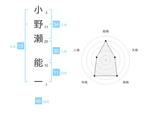 小野瀬 能一さんを姓名の画数から五運を鑑定