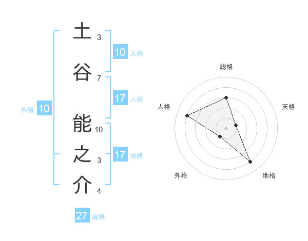 土谷 能之介さんを姓名の画数から五運を鑑定