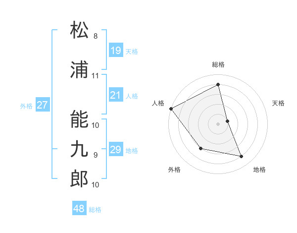 松浦 能九郎さんを姓名の画数から五運を鑑定