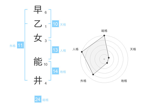 早乙女 能井さんを姓名の画数から五運を鑑定