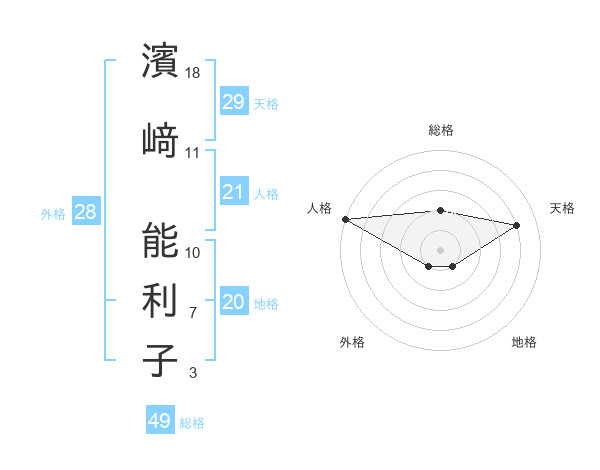 濱﨑 能利子さんの天格は29画の4点!