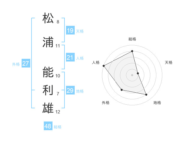 松浦 能利雄さんを姓名の画数から五運を鑑定