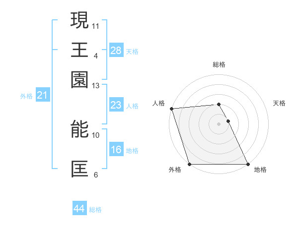 現王園 能匡さんを姓名の画数から五運を鑑定