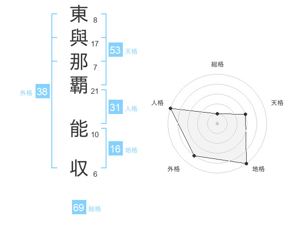 東與那覇 能収さんを姓名の画数から五運を鑑定