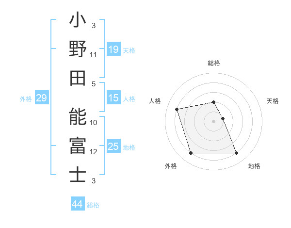 小野田 能富士さんを姓名の画数から五運を鑑定