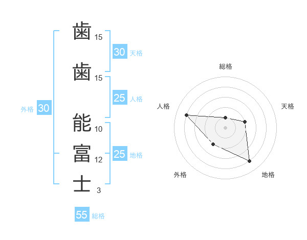 歯歯 能富士さんの総格は55画の1点!