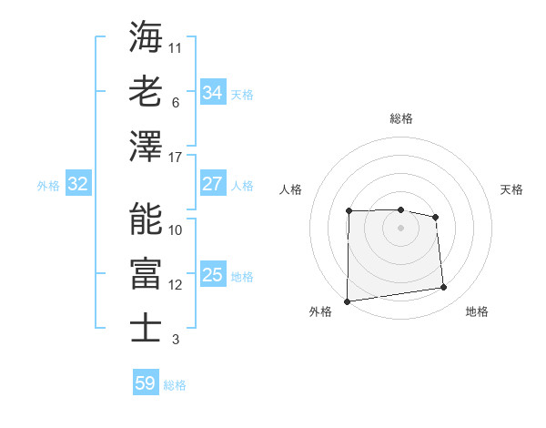 海老澤 能富士さんを姓名の画数から五運を鑑定