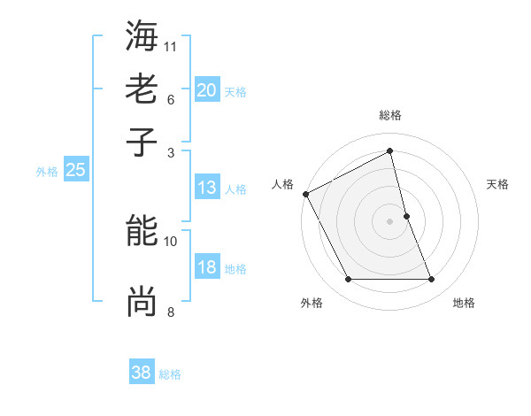 海老子 能尚さんの総格は38画の4点!