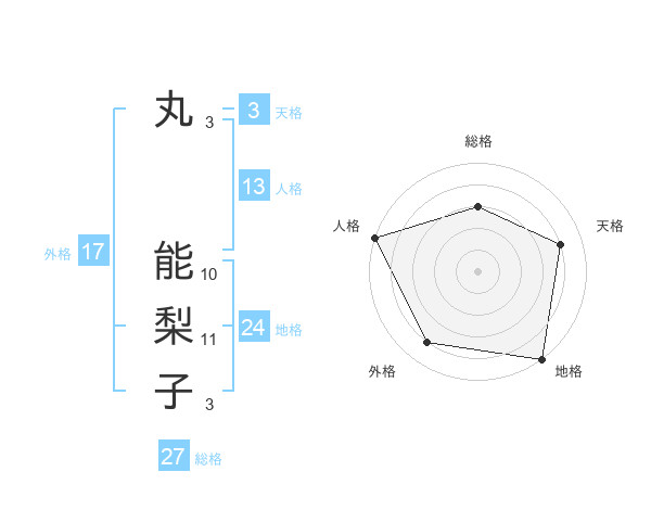 丸 能梨子さんを姓名の画数から五運を鑑定