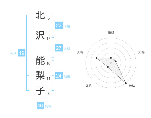 北沢 能梨子さんの総格は46画の1点!