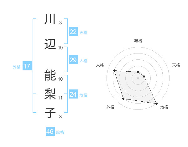 川辺 能梨子さんを姓名の画数から五運を鑑定