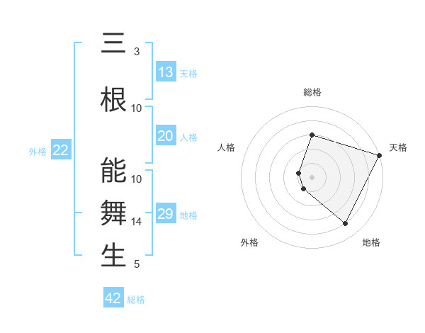三根 能舞生さんを姓名の画数から五運を鑑定