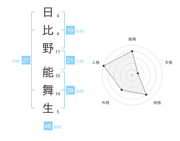 日比野 能舞生さんを姓名の画数から五運を鑑定