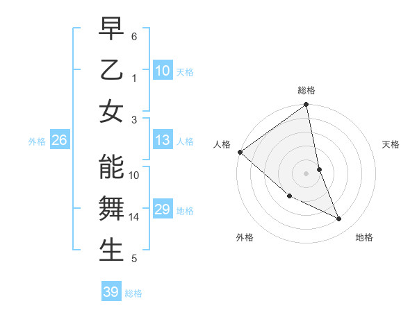 早乙女 能舞生さんを姓名の画数から五運を鑑定