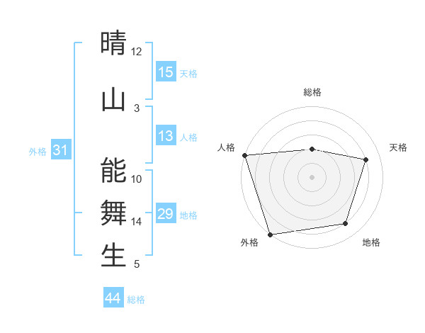 晴山 能舞生さんを姓名の画数から五運を鑑定