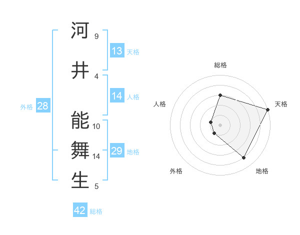 河井 能舞生さんの総格は42画の3点!