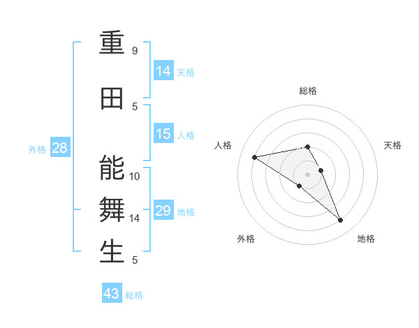重田 能舞生さんを姓名の画数から五運を鑑定