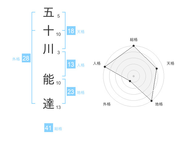 五十川 能達さんの総格は41画の5点!