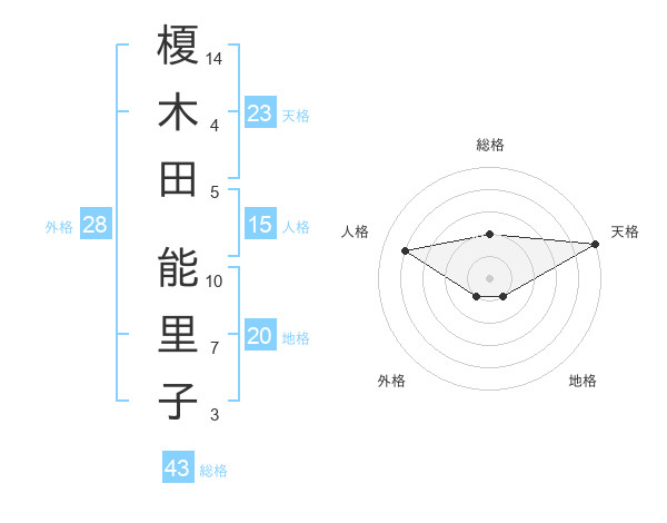 榎木田 能里子さんを姓名の画数から五運を鑑定
