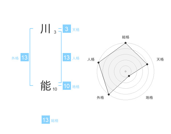 川 能さんの外格は13画の5点!