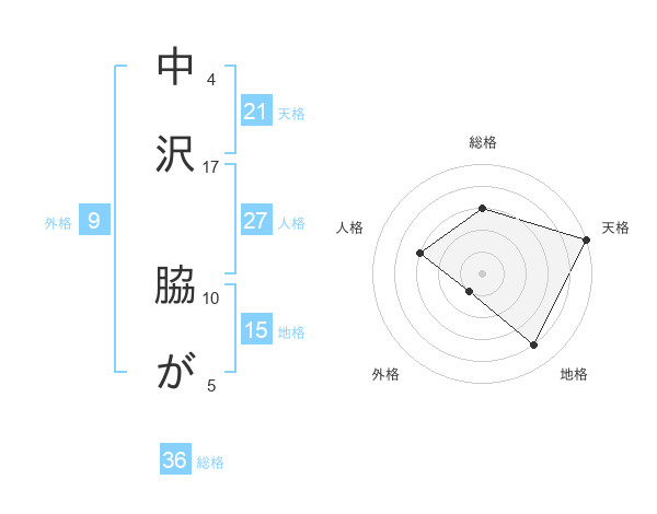 中沢 脇がさんの天格は21画の5点!