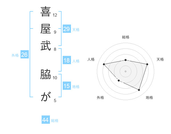 喜屋武 脇がさんを姓名の画数から五運を鑑定