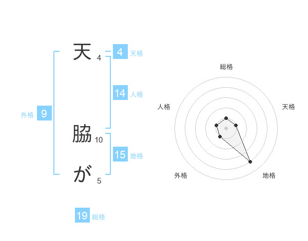 天 脇がさんの地格は15画の4点!