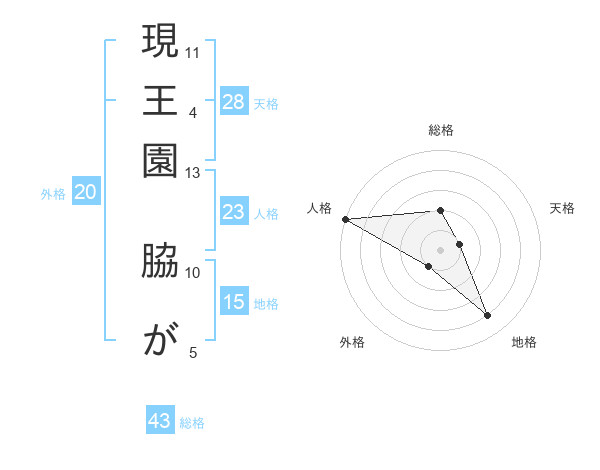 現王園 脇がさんを姓名の画数から五運を鑑定