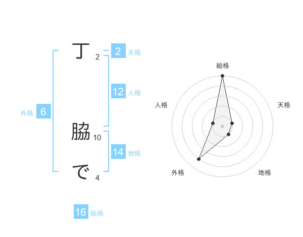 丁 脇でさんの総格は16画の5点!