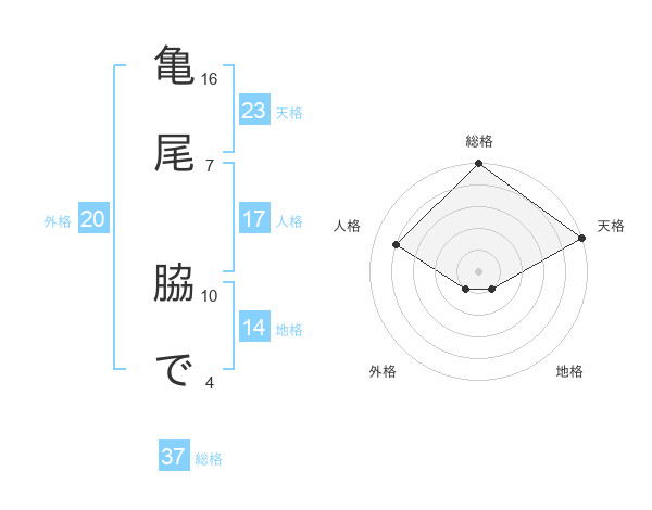 亀尾 脇でさんの天格は23画の5点!