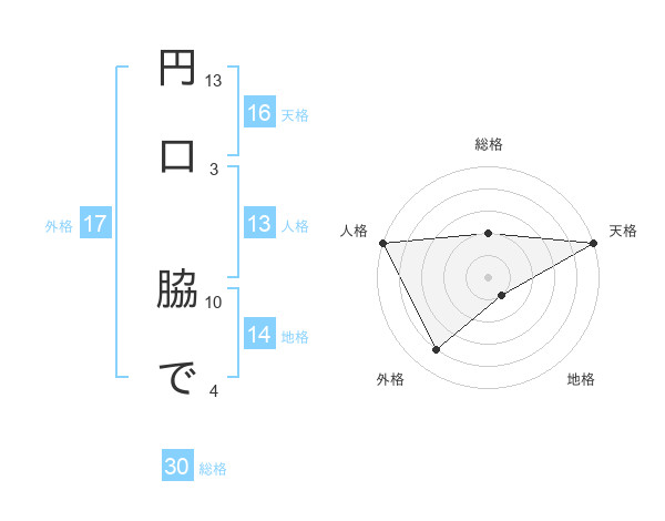 円口 脇でさんの総格は30画の2点!