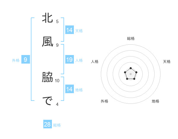 北風 脇でさんの総格は28画の1点!