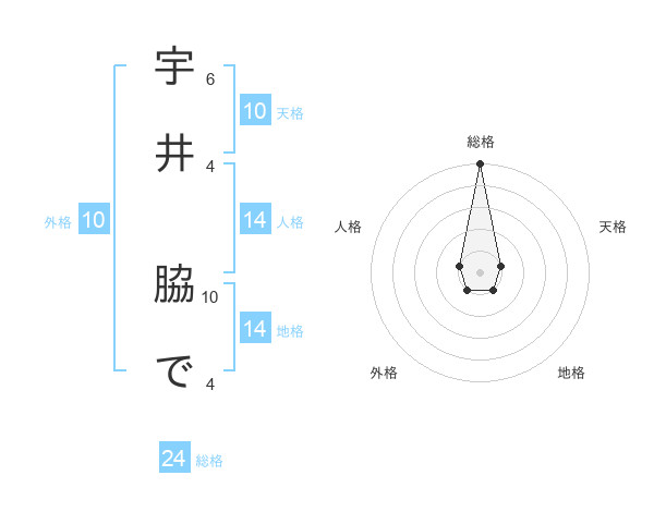 宇井 脇でさんの総格は24画の5点!