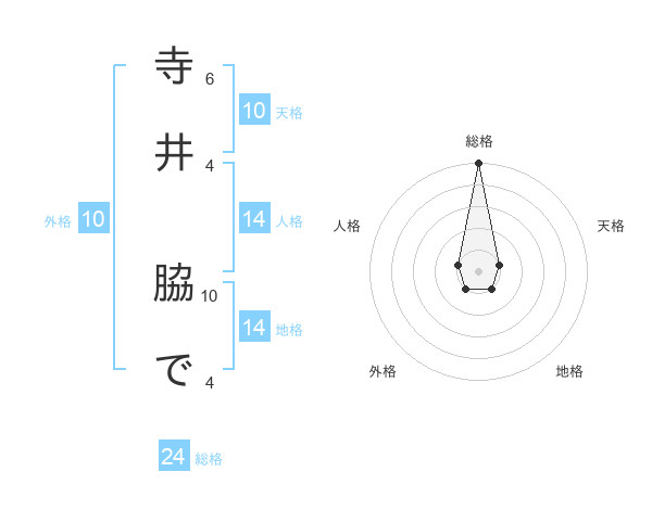 寺井 脇でさんの天格は10画の1点!