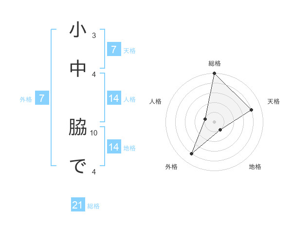 小中 脇でさんの総格は21画の5点!