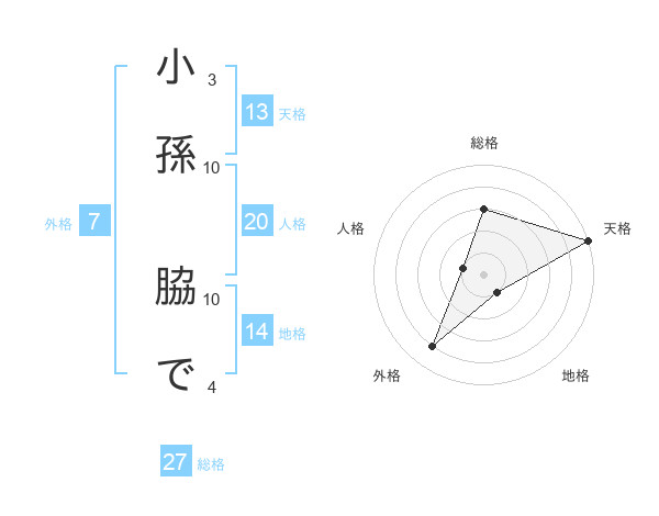 小孫 脇でさんの天格は13画の5点!