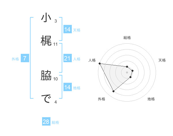 小梶 脇でさんの天格は14画の1点!