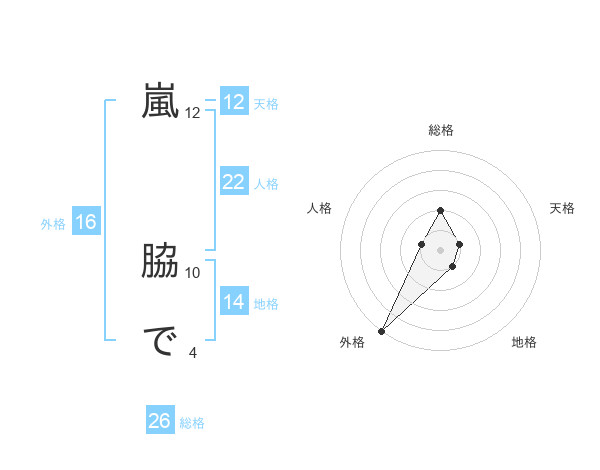 嵐 脇でさんを姓名の画数から五運を鑑定