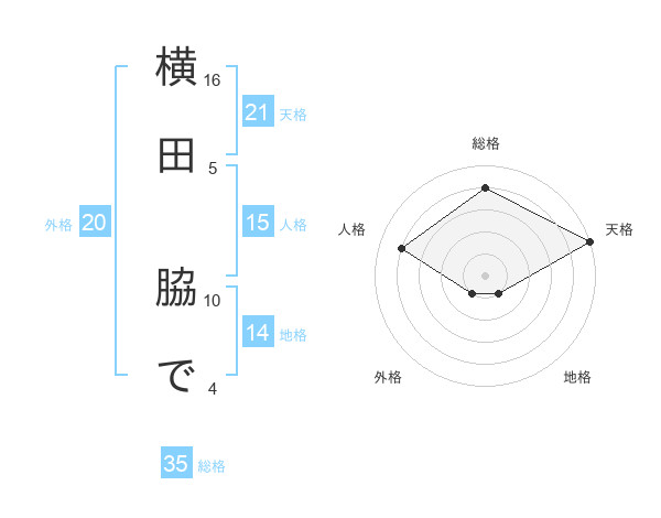 横田 脇でさんの天格は21画の5点!