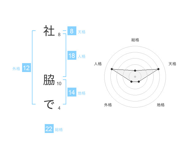 社 脇でさんの総格は22画の1点!