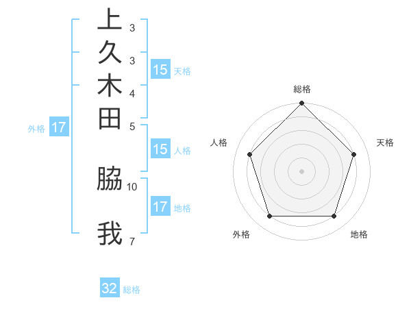 上久木田 脇我さんを姓名の画数から五運を鑑定