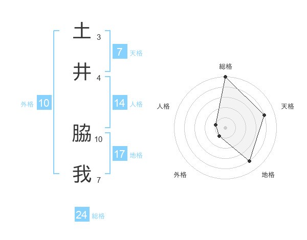 土井 脇我さんの総格は24画の5点!