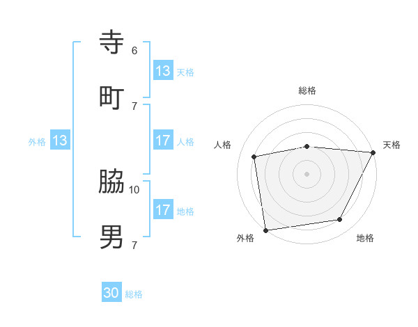 寺町 脇男さんの外格は13画の5点!