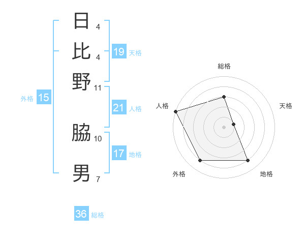 日比野 脇男さんを姓名の画数から五運を鑑定