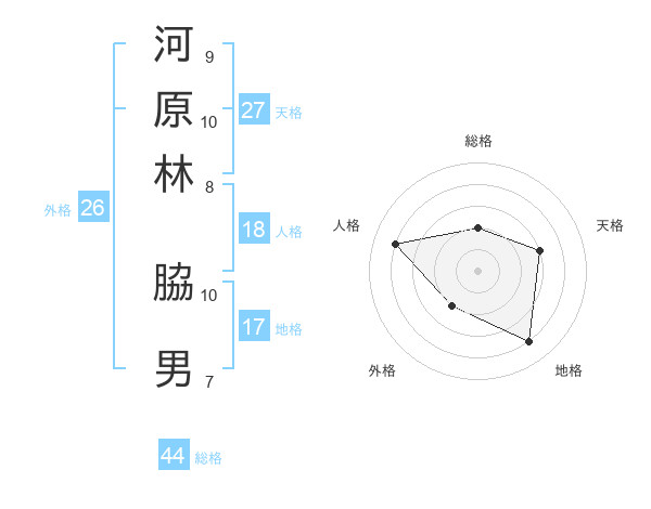 河原林 脇男さんを姓名の画数から五運を鑑定