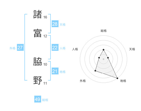 諸富 脇野さんの総格は49画の2点!