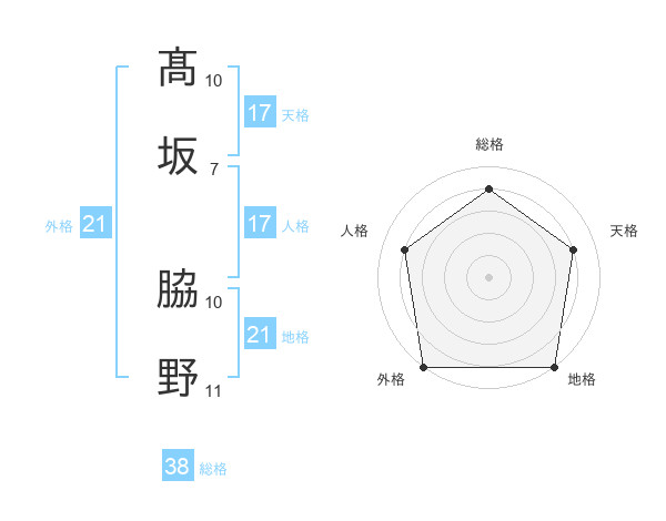 髙坂 脇野さんの地格は21画の5点!