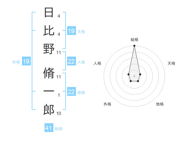 日比野 脩一郎さんの総格は41画の5点!